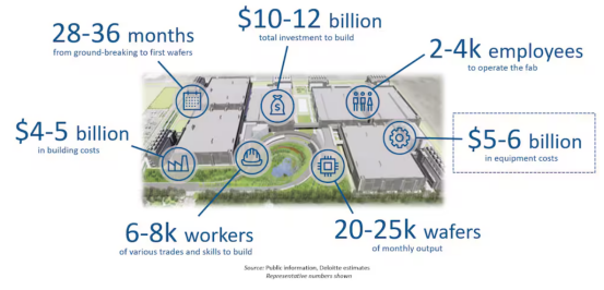 據(jù)Deloitte估算,建造一座晶圓廠的成本約為100億美元起,另外還有50億美元的機械和設(shè)備成本。在經(jīng)歷地緣政治危機、芯片荒后,半導(dǎo)體產(chǎn)業(yè)從全球合作,改為追求自給自足,自2021年起,全球IC制造企業(yè)開啟擴產(chǎn)之路,并于2023年第一季度達到資本支出的頂峰。